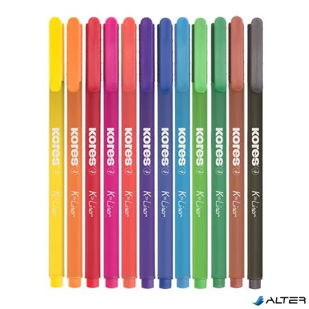 Tűfilc készlet, 0,4 mm, KORES "K-Liner", 12 különböző szín