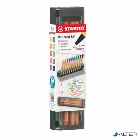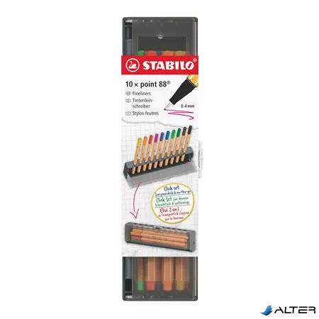 Tűfilc készlet, 0,4 mm, STABILO "Point 88", 10 db-os asztali készlet