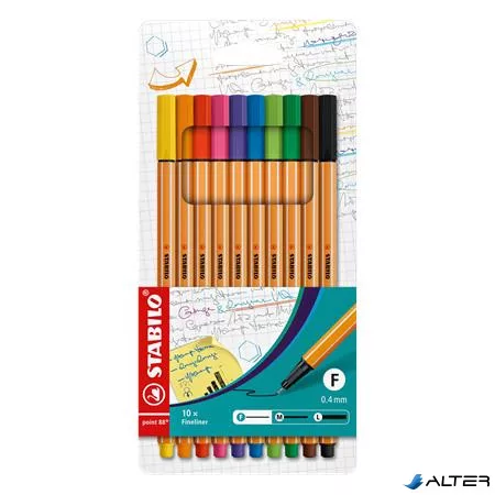 Tűfilc készlet, 0,4 mm, STABILO "Point 88", 10 különböző szín