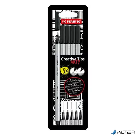 Tűfilc készlet, STABILO "Creative Tips ARTY", fekete, 5 különböző vastagság