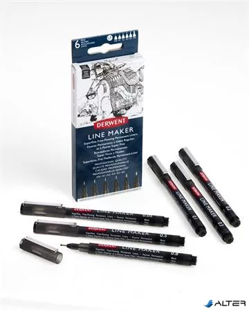 Tűfilc szett, 0,05/0,1/0,2/ 0,3/0,5/0,8 mm, DERWENT 'Line Marker', fekete