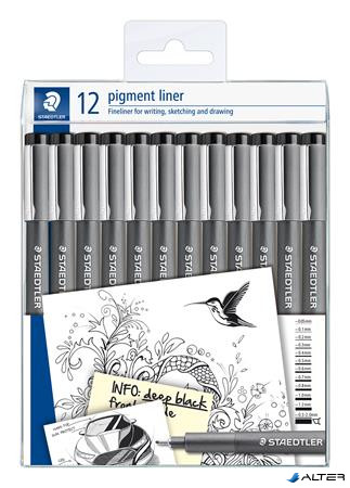 Tusfilc készlet, 12 különböző vonalvastagság, STAEDTLER "Pigment Liner 308", fekete