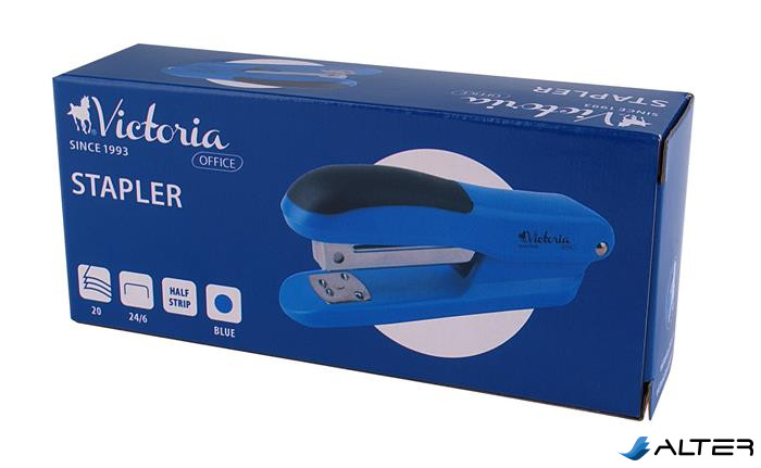 Tűzőgép, 24/6, 20 lap, VICTORIA OFFICE, "Half-Strip", kék