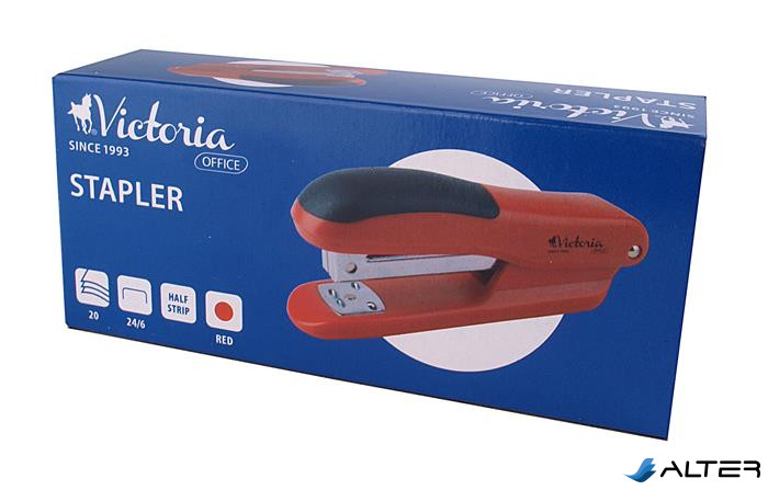 Tűzőgép, 24/6, 20 lap, VICTORIA OFFICE, "Half-Strip", piros