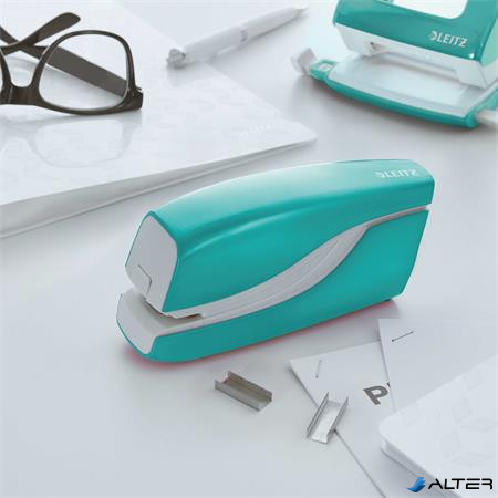 Tűzőgép, elektromos, No.10, 10 lap, LEITZ "Wow", jégkék