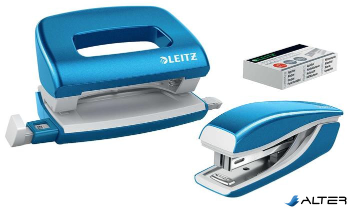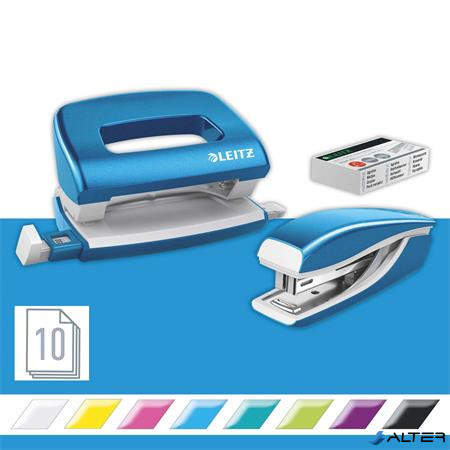 Tűzőgép és lyukasztó szett, 10 lap, fém, LEITZ "Wow Mini", kék