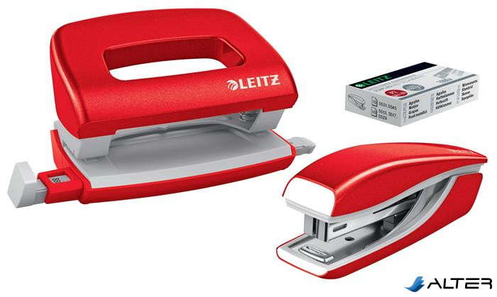 Tűzőgép és lyukasztó szett, 10 lap, fém, LEITZ "Wow Mini", piros