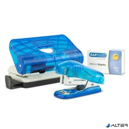 Tűzőgép és lyukasztó szett 24/6, 26/6, 12 lap, RAPESCO, átlátszó kék, tűzőkapoccsal