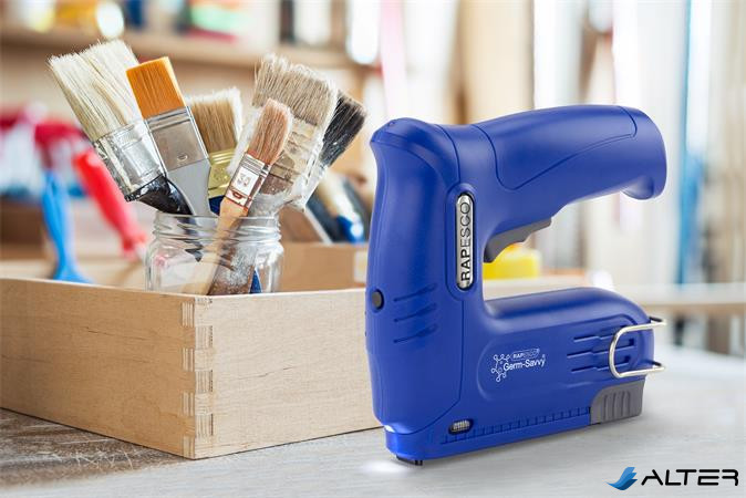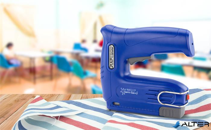 Tűzőpisztoly, vezeték nélküli, elektromos, USB, RAPESCO Germ-Savvy "T12-USB", kék