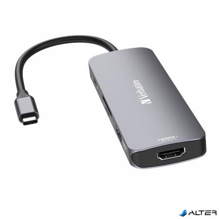 USB elosztó-HUB, USB-C PD/2xHDMI/3xUSB-A/SD/mSD, VERBATIM
