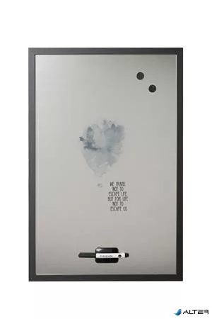 Üzenőtábla, ezüst, mágneses, 60x40 cm, fekete fa keret, VICTORIA VISUAL, "Travel"
