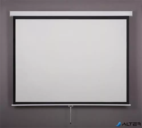 kézi mozgatású, rolós vetítővászon, lassított visszahúzású mechanikával