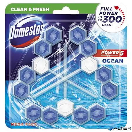 WC frissítő blokk, 3 db-os, DOMESTOS "Power 5", óceán