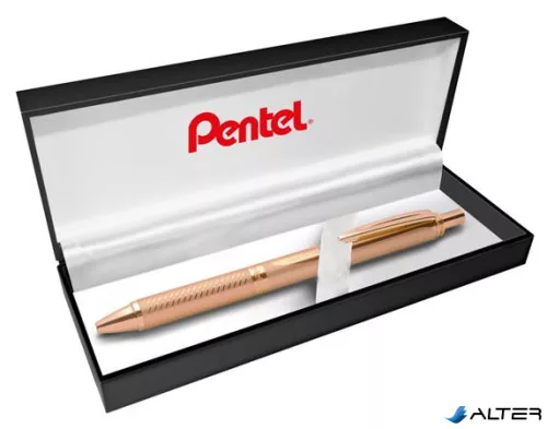 Zseléstoll, 0,35 mm, nyomógombos, rosegold tolltest, PENTEL "EnerGel BL-407" fekete, ajándék kék tollbetéttel