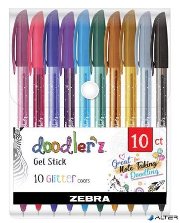 Zseléstoll készlet, 0,33 mm, kupakos, ZEBRA "Doodler'z Glitter", 10 csillogó vegyes szín